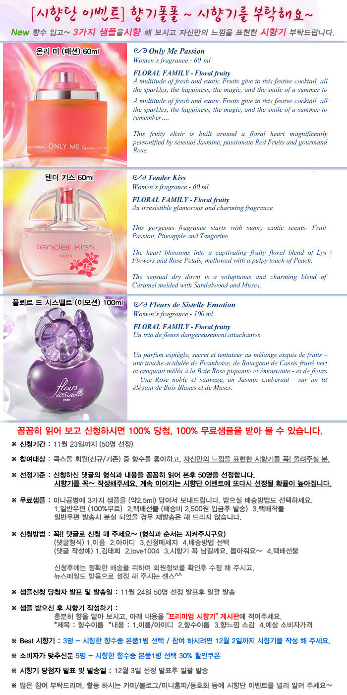 [1차] 100%무료 시향단 / 11월23일 마감~ 많이 신청하세요.